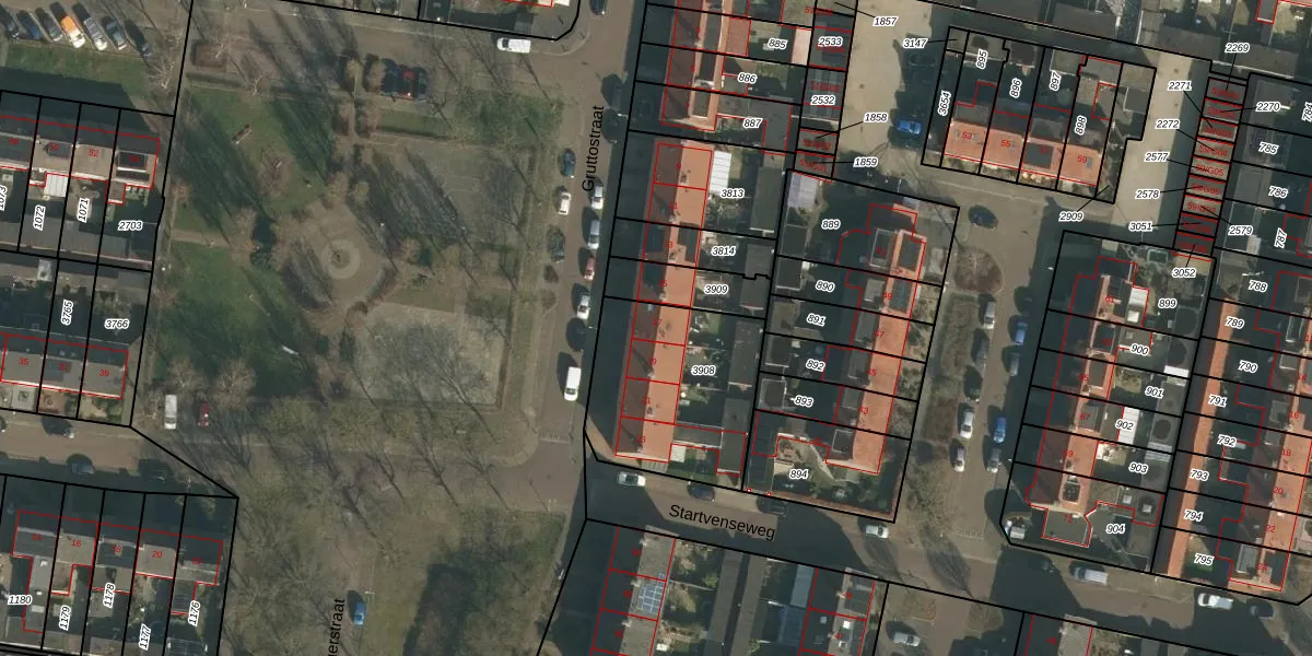 Het perceel waarop Gruttostraat 17 staat heeft een oppervlakte van 628 m². Dit is een groot perceel. De perceeloppervlakte wordt geregistreerd door het Kadaster. Gedetailleerde informatie over de maten van dit perceel kunt u vinden in het rapport Kadastrale kaart met maatvoering van Gruttostraat 17.