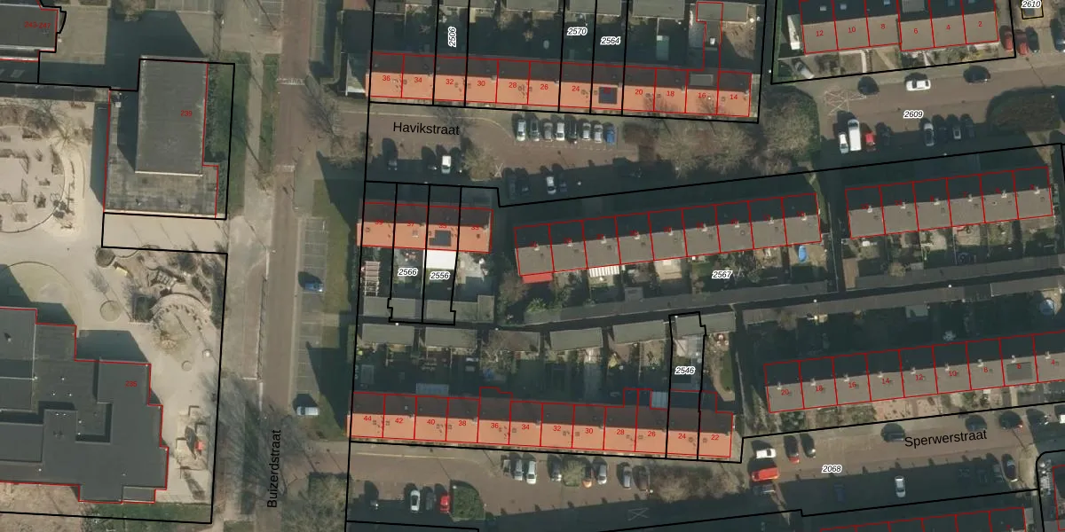Het perceel waarop Havikstraat 31 staat heeft een oppervlakte van 6147 m². Dit is een zeer groot perceel. De perceeloppervlakte wordt geregistreerd door het Kadaster. Gedetailleerde informatie over de maten van dit perceel kunt u vinden in het rapport Kadastrale kaart met maatvoering van Havikstraat 31.