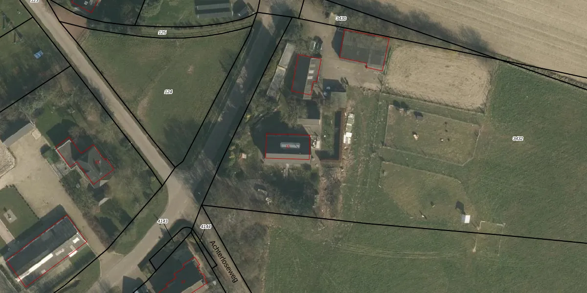 Het perceel waarop het adres ligt is WCN00-L-3432. De afkorting 'WCN00' staat voor kadastrale gemeente Wijchen. De gemiddelde perceeloppervlakte in de kadastrale gemeente Wijchen is 1827,1 m². Dit perceel is met zijn 9360 m² dus groter dan gemiddeld. De grootste perceeloppervlakte in de kadastrale gemeente is 66,4 ha. De kleinste oppervlakte bedraagt 0 m². Er zijn 2 adressen aanwezig op het perceel. In de Basisregistratie Kadaster (BRK) werden de grenzen van het perceel geregistreerd op 30-03-2010.