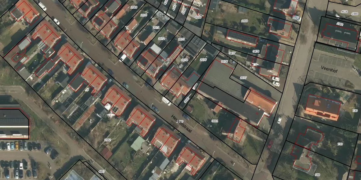 Het perceel waarop Heuvelstraat 12 staat heeft een oppervlakte van 345 m². Dit is een groot perceel. De perceeloppervlakte wordt geregistreerd door het Kadaster. Gedetailleerde informatie over de maten van dit perceel kunt u vinden in het rapport Kadastrale kaart met maatvoering van Heuvelstraat 12.