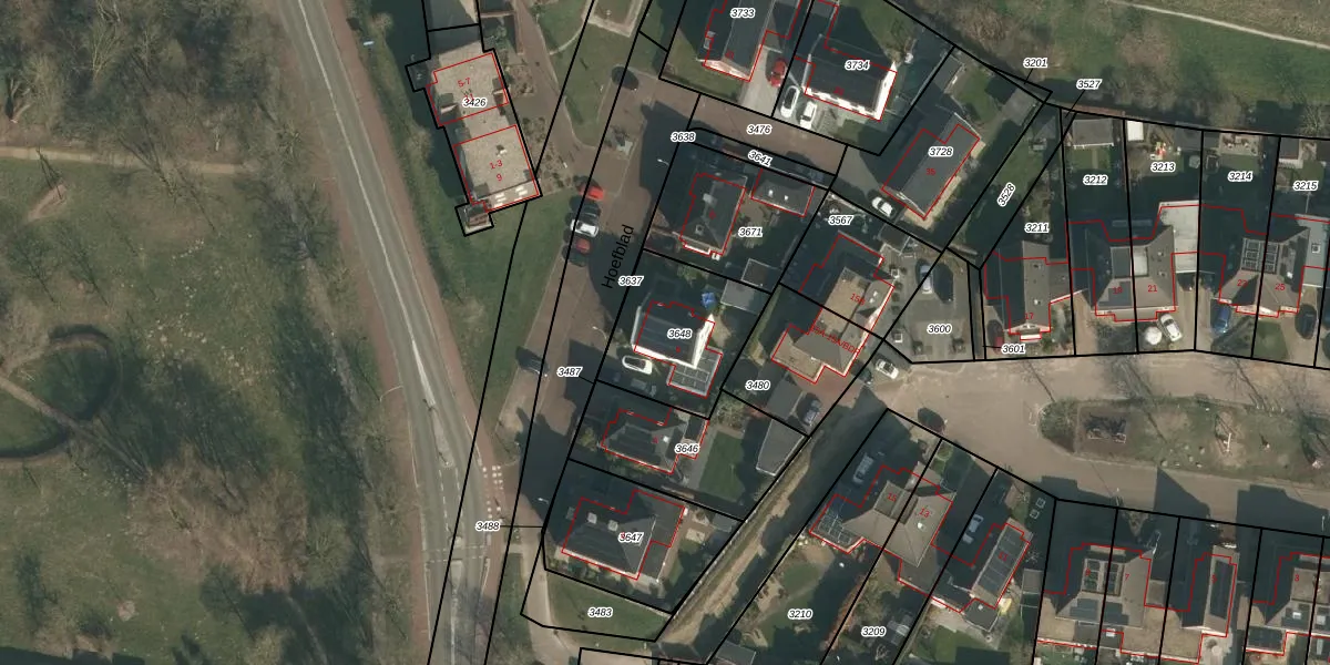 Gebruik de zoekbalk of klik op een perceel voor informatie over de adressen binnen dit perceel.