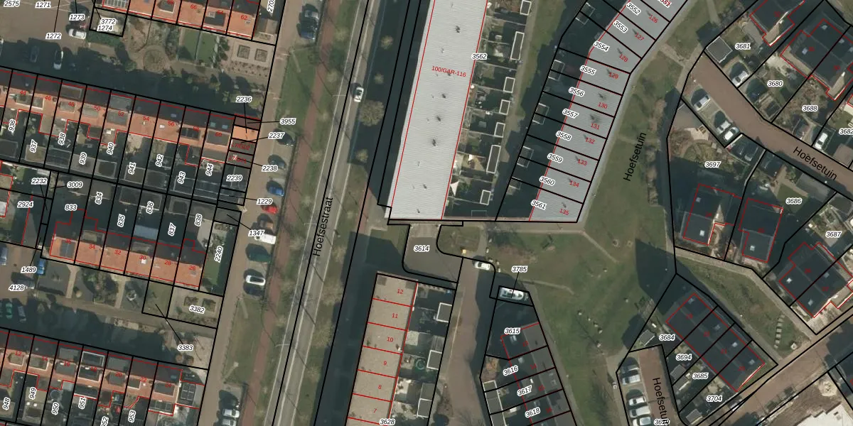 Hoefsetuin 100-GAR is gelegen op kadastraal perceel WCN00B3562. Deze kadastrale aanduiding is uniek en wordt gebruikt door het Kadaster om eigendomsrechten en andere zakelijke rechten vast te leggen. Het perceel maakt onderdeel uit van de kadastrale gemeente Wijchen.