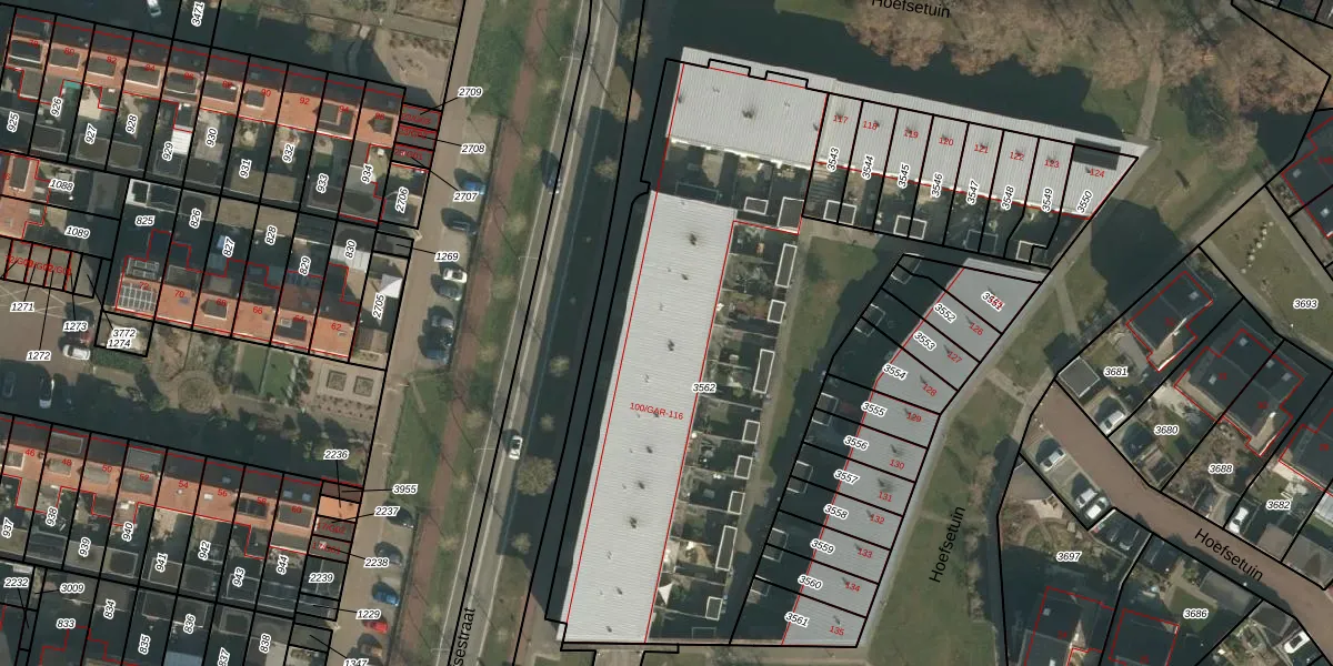 Hoefsetuin 109 is gelegen op kadastraal perceel WCN00B3562. Deze kadastrale aanduiding is uniek en wordt gebruikt door het Kadaster om eigendomsrechten en andere zakelijke rechten vast te leggen. Het perceel maakt onderdeel uit van de kadastrale gemeente Wijchen.