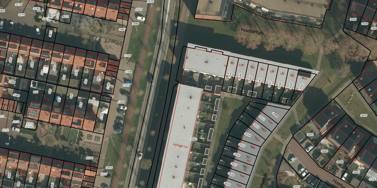 Hoefsetuin 112 is gelegen op kadastraal perceel WCN00B3562. Deze kadastrale aanduiding is uniek en wordt gebruikt door het Kadaster om eigendomsrechten en andere zakelijke rechten vast te leggen. Het perceel maakt onderdeel uit van de kadastrale gemeente Wijchen.