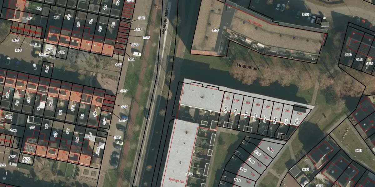 Hoefsetuin 113 is gelegen op kadastraal perceel WCN00B3562. Deze kadastrale aanduiding is uniek en wordt gebruikt door het Kadaster om eigendomsrechten en andere zakelijke rechten vast te leggen. Het perceel maakt onderdeel uit van de kadastrale gemeente Wijchen.