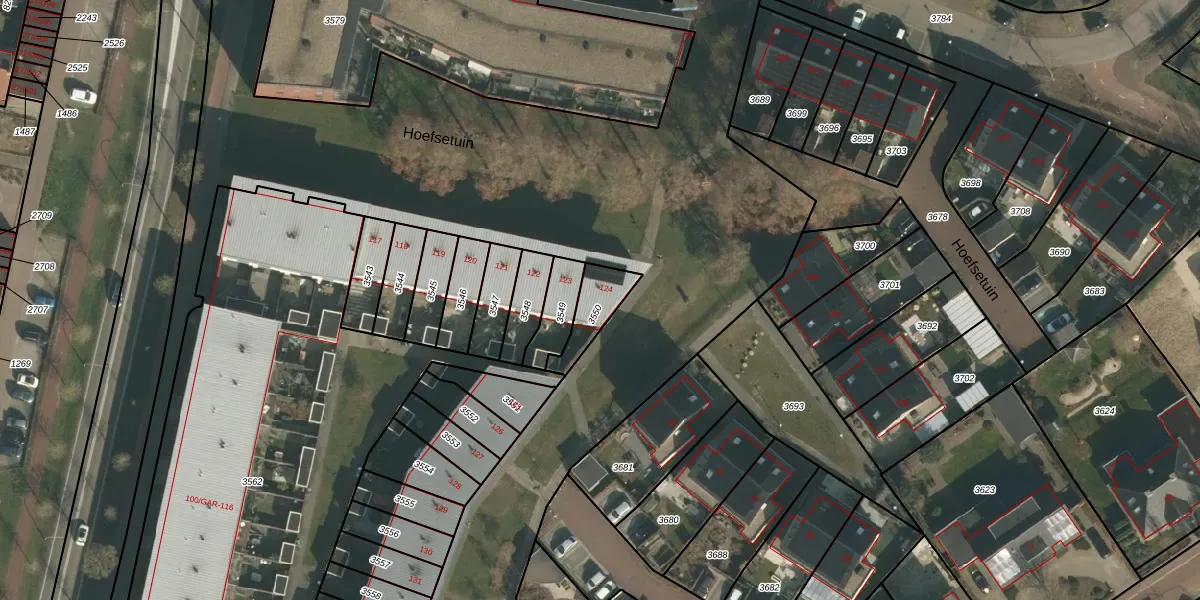 Hoefsetuin 124 is gelegen op kadastraal perceel WCN00B3550. Deze kadastrale aanduiding is uniek en wordt gebruikt door het Kadaster om eigendomsrechten en andere zakelijke rechten vast te leggen. Het perceel maakt onderdeel uit van de kadastrale gemeente Wijchen.
