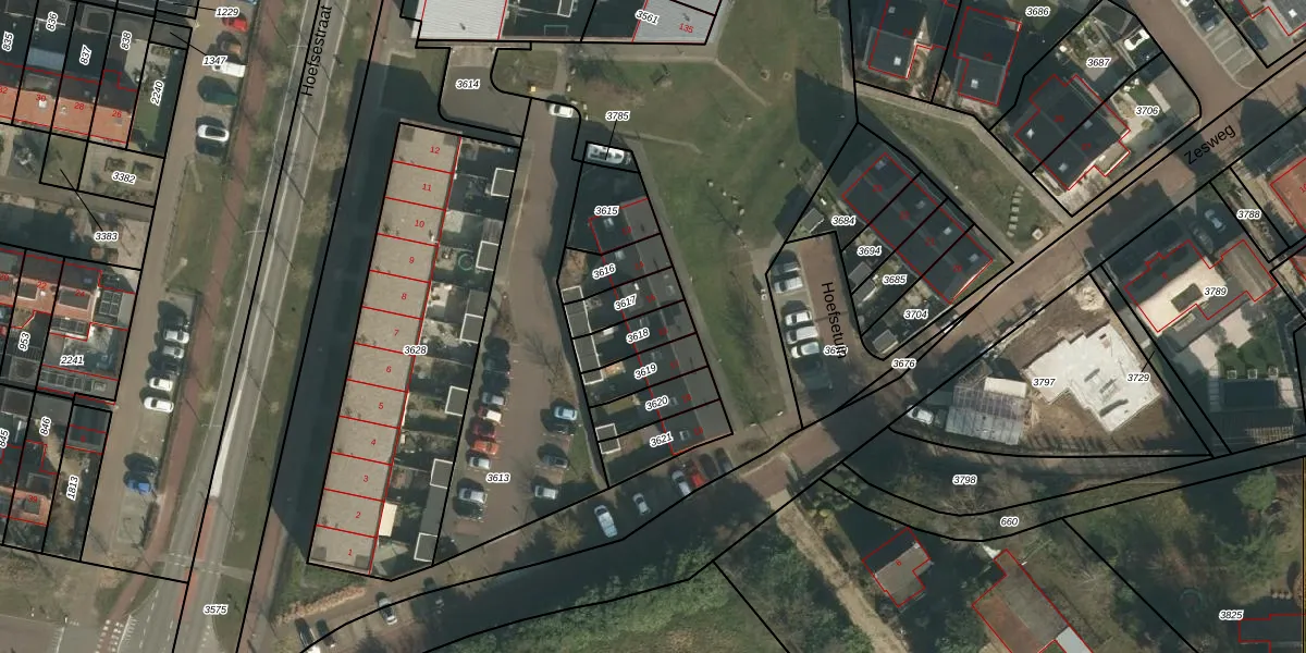 Hoefsetuin 16 is gelegen op kadastraal perceel WCN00B3618. Deze kadastrale aanduiding is uniek en wordt gebruikt door het Kadaster om eigendomsrechten en andere zakelijke rechten vast te leggen. Het perceel maakt onderdeel uit van de kadastrale gemeente Wijchen.