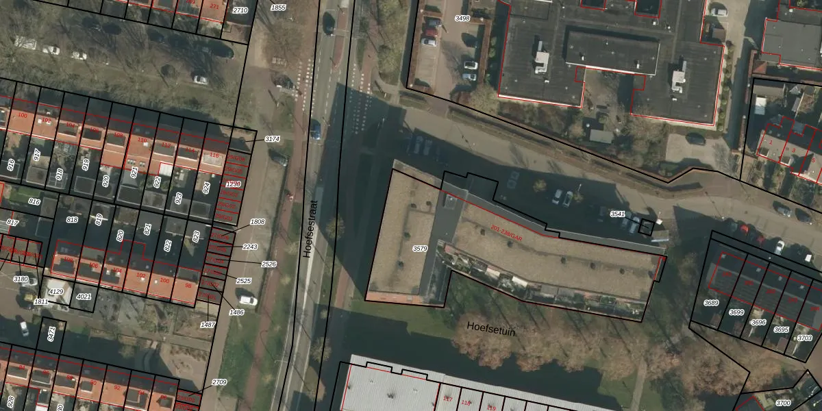 Hoefsetuin 212 is gelegen op kadastraal perceel WCN00B3579. Deze kadastrale aanduiding is uniek en wordt gebruikt door het Kadaster om eigendomsrechten en andere zakelijke rechten vast te leggen. Het perceel maakt onderdeel uit van de kadastrale gemeente Wijchen.