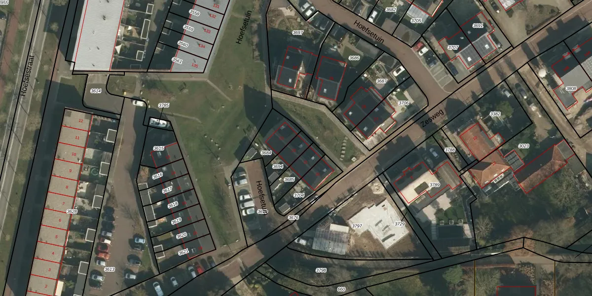 Het perceel waarop Hoefsetuin 22 staat heeft een oppervlakte van 110 m². Dit is een middelgroot perceel. De perceeloppervlakte wordt geregistreerd door het Kadaster. Gedetailleerde informatie over de maten van dit perceel kunt u vinden in het rapport Kadastrale kaart met maatvoering van Hoefsetuin 22.