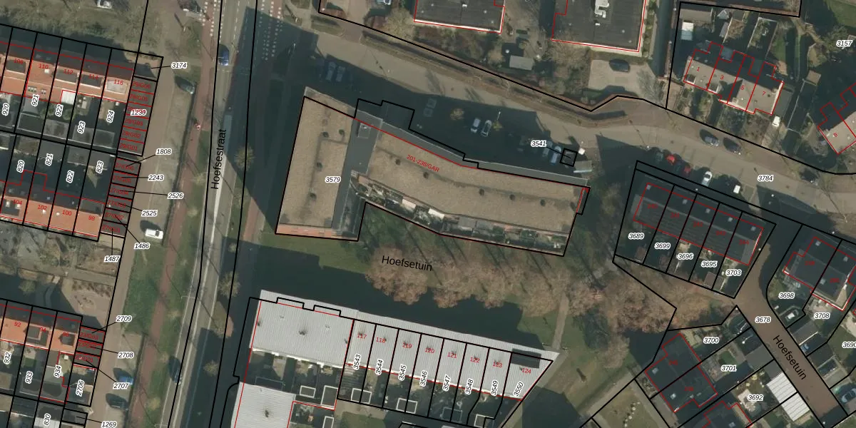 Het perceel waarop Hoefsetuin 233 staat heeft een oppervlakte van 1525 m². Dit is een zeer groot perceel. De perceeloppervlakte wordt geregistreerd door het Kadaster. Gedetailleerde informatie over de maten van dit perceel kunt u vinden in het rapport Kadastrale kaart met maatvoering van Hoefsetuin 233.