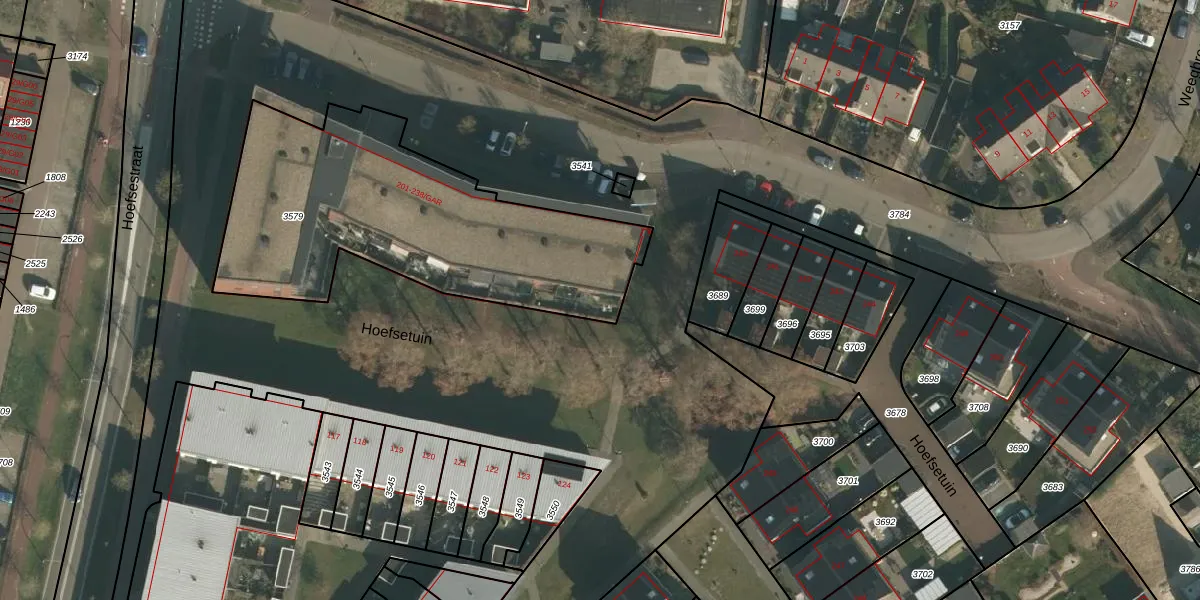 Hoefsetuin 237 is gelegen op kadastraal perceel WCN00B3579. Deze kadastrale aanduiding is uniek en wordt gebruikt door het Kadaster om eigendomsrechten en andere zakelijke rechten vast te leggen. Het perceel maakt onderdeel uit van de kadastrale gemeente Wijchen.