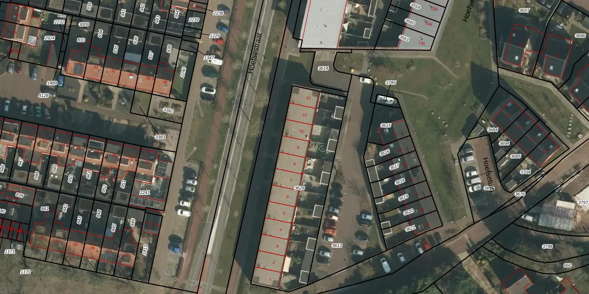 Hoefsetuin 9 is gelegen op kadastraal perceel WCN00B3628. Deze kadastrale aanduiding is uniek en wordt gebruikt door het Kadaster om eigendomsrechten en andere zakelijke rechten vast te leggen. Het perceel maakt onderdeel uit van de kadastrale gemeente Wijchen.