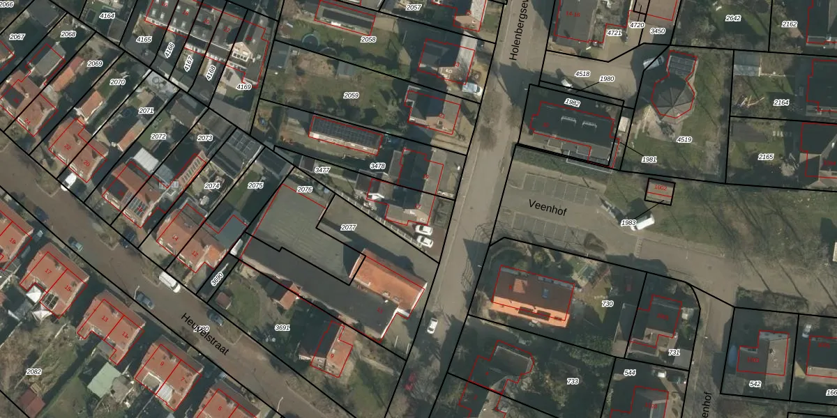 Gebruik de zoekbalk of klik op een perceel voor informatie over de adressen binnen dit perceel.