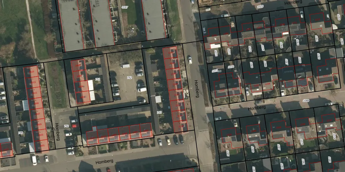 Het perceel waarop Homberg 1108 staat heeft een oppervlakte van 2049 m². Dit is een zeer groot perceel. De perceeloppervlakte wordt geregistreerd door het Kadaster. Gedetailleerde informatie over de maten van dit perceel kunt u vinden in het rapport Kadastrale kaart met maatvoering van Homberg 1108.