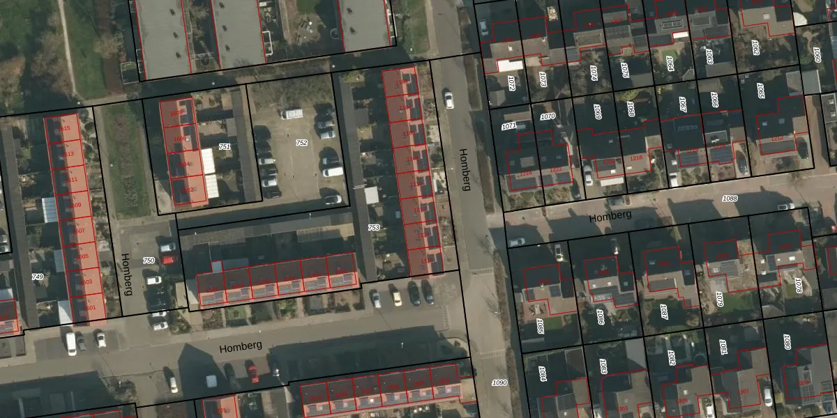 Het perceel waarop Homberg 1112 staat heeft een oppervlakte van 2049 m². Dit is een zeer groot perceel. De perceeloppervlakte wordt geregistreerd door het Kadaster. Gedetailleerde informatie over de maten van dit perceel kunt u vinden in het rapport Kadastrale kaart met maatvoering van Homberg 1112.