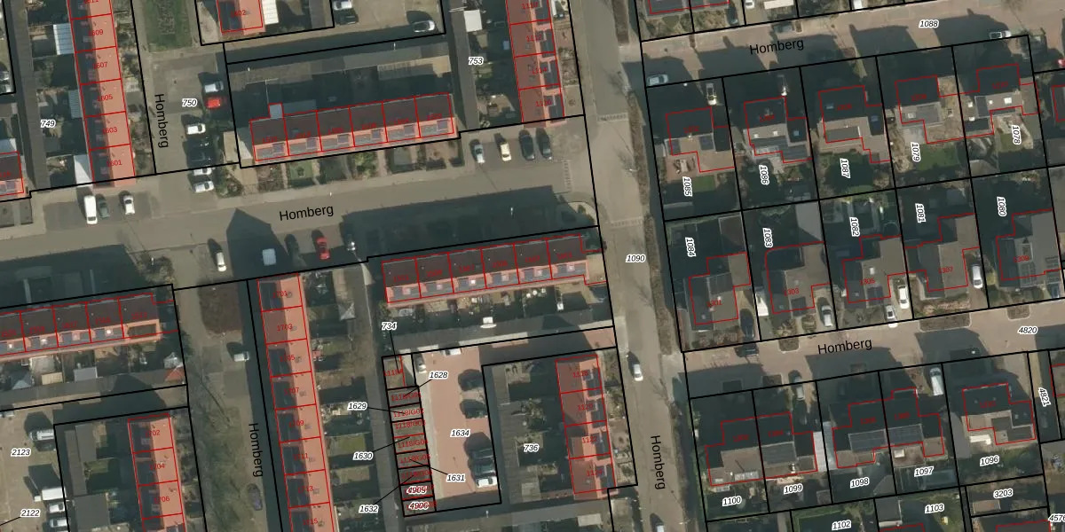 Het perceel waarop Homberg 1503 staat heeft een oppervlakte van 3928 m². Dit is een zeer groot perceel. De perceeloppervlakte wordt geregistreerd door het Kadaster. Gedetailleerde informatie over de maten van dit perceel kunt u vinden in het rapport Kadastrale kaart met maatvoering van Homberg 1503.