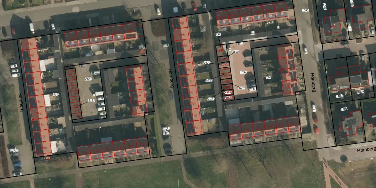 Het perceel waarop Homberg 1713 staat heeft een oppervlakte van 3928 m². Dit is een zeer groot perceel. De perceeloppervlakte wordt geregistreerd door het Kadaster. Gedetailleerde informatie over de maten van dit perceel kunt u vinden in het rapport Kadastrale kaart met maatvoering van Homberg 1713.