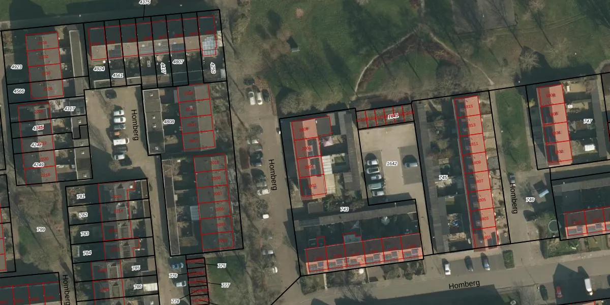 Het perceel waarop Homberg 2006 staat heeft een oppervlakte van 1600 m². Dit is een zeer groot perceel. De perceeloppervlakte wordt geregistreerd door het Kadaster. Gedetailleerde informatie over de maten van dit perceel kunt u vinden in het rapport Kadastrale kaart met maatvoering van Homberg 2006.