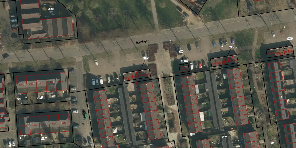 Het perceel waarop Homberg 2921 staat heeft een oppervlakte van 99 m². Dit is een klein perceel. De perceeloppervlakte wordt geregistreerd door het Kadaster. Gedetailleerde informatie over de maten van dit perceel kunt u vinden in het rapport Kadastrale kaart met maatvoering van Homberg 2921.