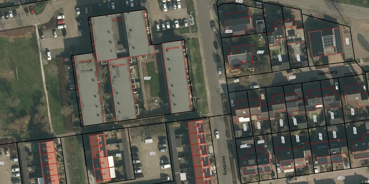 Het perceel waarop Homberg 3594-A staat heeft een oppervlakte van 3030 m². Dit is een zeer groot perceel. De perceeloppervlakte wordt geregistreerd door het Kadaster. Gedetailleerde informatie over de maten van dit perceel kunt u vinden in het rapport Kadastrale kaart met maatvoering van Homberg 3594-A.