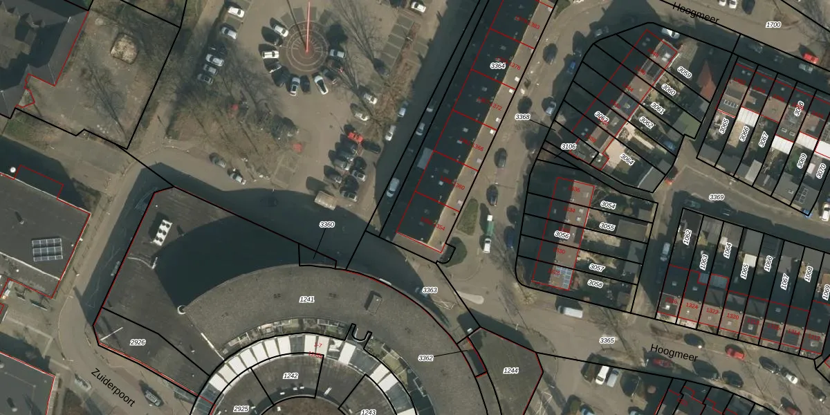 Het perceel waarop Hoogmeer 1354 staat heeft een oppervlakte van 1100 m². Dit is een zeer groot perceel. De perceeloppervlakte wordt geregistreerd door het Kadaster. Gedetailleerde informatie over de maten van dit perceel kunt u vinden in het rapport Kadastrale kaart met maatvoering van Hoogmeer 1354.