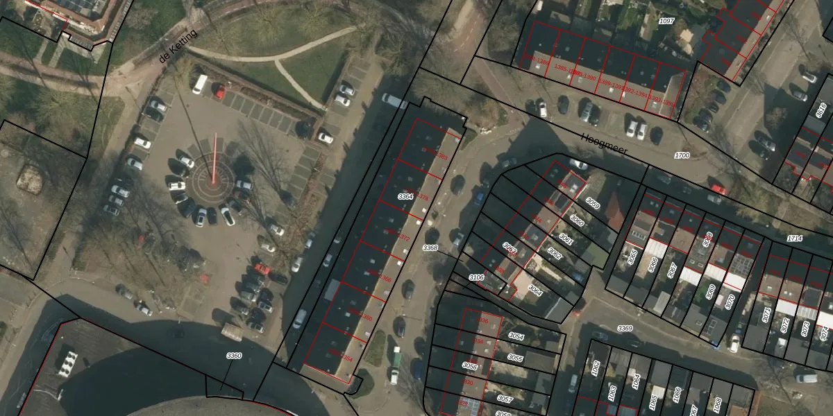 Het perceel waarop Hoogmeer 1373 staat heeft een oppervlakte van 1100 m². Dit is een zeer groot perceel. De perceeloppervlakte wordt geregistreerd door het Kadaster. Gedetailleerde informatie over de maten van dit perceel kunt u vinden in het rapport Kadastrale kaart met maatvoering van Hoogmeer 1373.