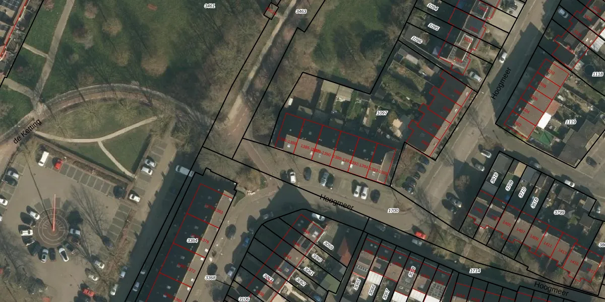 Hoogmeer 1385 is gelegen op kadastraal perceel WCN00F1097. Deze kadastrale aanduiding is uniek en wordt gebruikt door het Kadaster om eigendomsrechten en andere zakelijke rechten vast te leggen. Het perceel maakt onderdeel uit van de kadastrale gemeente Wijchen.