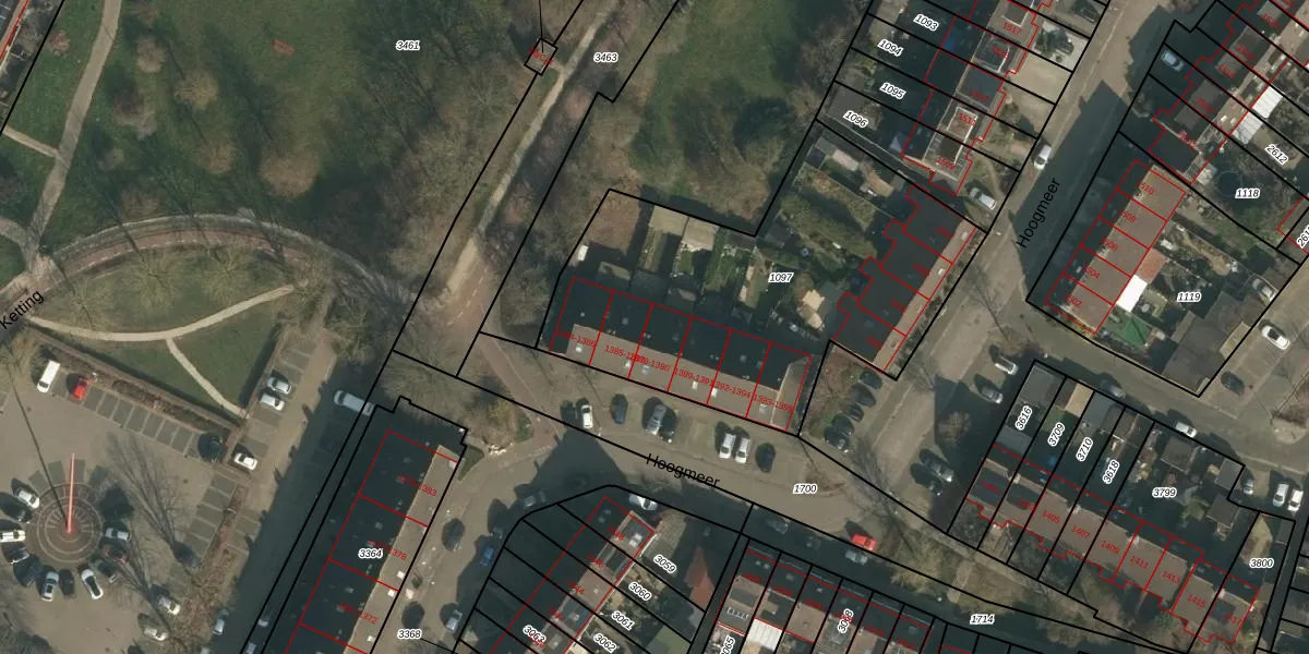 Hoogmeer 1390 is gelegen op kadastraal perceel WCN00F1097. Deze kadastrale aanduiding is uniek en wordt gebruikt door het Kadaster om eigendomsrechten en andere zakelijke rechten vast te leggen. Het perceel maakt onderdeel uit van de kadastrale gemeente Wijchen.