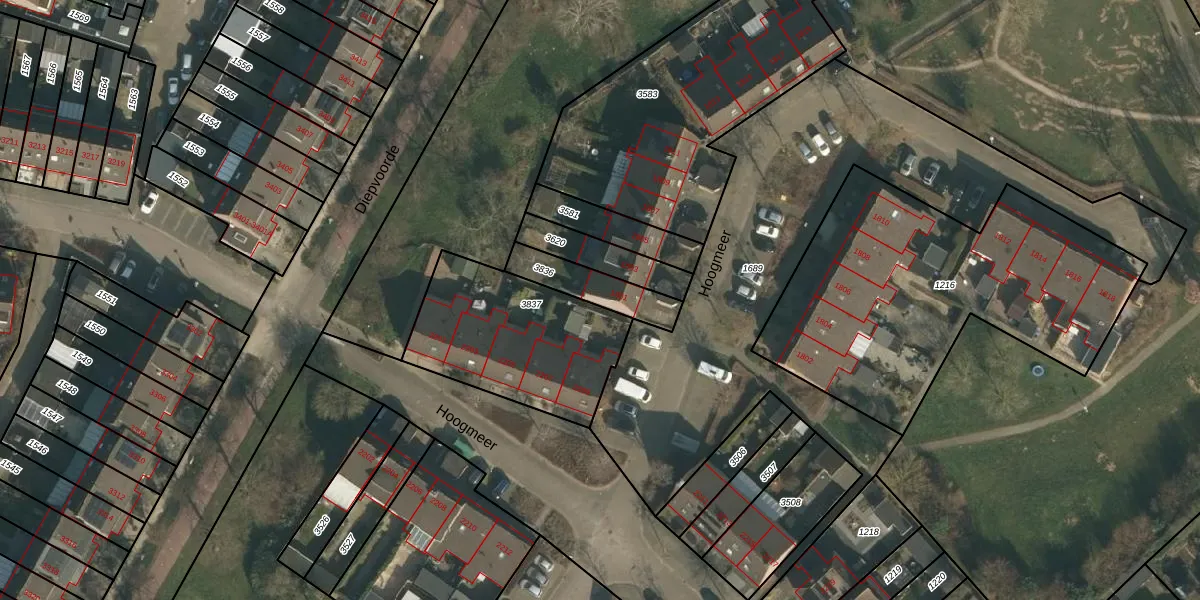 Hoogmeer 1801 is gelegen op kadastraal perceel WCN00F3836. Deze kadastrale aanduiding is uniek en wordt gebruikt door het Kadaster om eigendomsrechten en andere zakelijke rechten vast te leggen. Het perceel maakt onderdeel uit van de kadastrale gemeente Wijchen.
