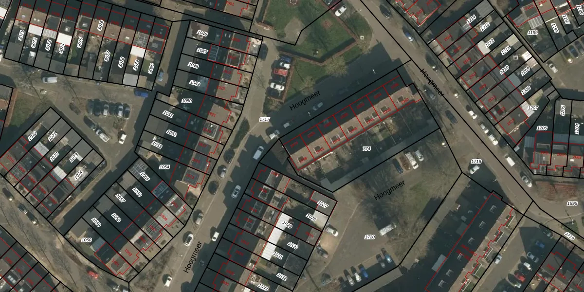 Het perceel waarop Hoogmeer 1924 staat heeft een oppervlakte van 1187 m². Dit is een zeer groot perceel. De perceeloppervlakte wordt geregistreerd door het Kadaster. Gedetailleerde informatie over de maten van dit perceel kunt u vinden in het rapport Kadastrale kaart met maatvoering van Hoogmeer 1924.