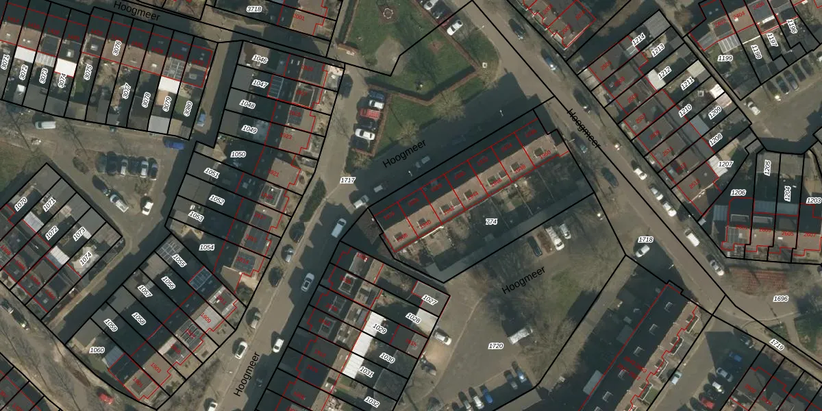 Het perceel waarop Hoogmeer 1926 staat heeft een oppervlakte van 1187 m². Dit is een zeer groot perceel. De perceeloppervlakte wordt geregistreerd door het Kadaster. Gedetailleerde informatie over de maten van dit perceel kunt u vinden in het rapport Kadastrale kaart met maatvoering van Hoogmeer 1926.