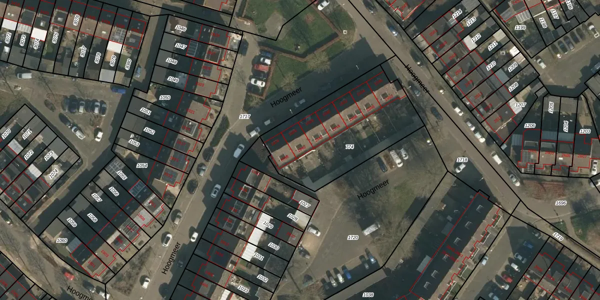 Het perceel waarop Hoogmeer 1940 staat heeft een oppervlakte van 1187 m². Dit is een zeer groot perceel. De perceeloppervlakte wordt geregistreerd door het Kadaster. Gedetailleerde informatie over de maten van dit perceel kunt u vinden in het rapport Kadastrale kaart met maatvoering van Hoogmeer 1940.