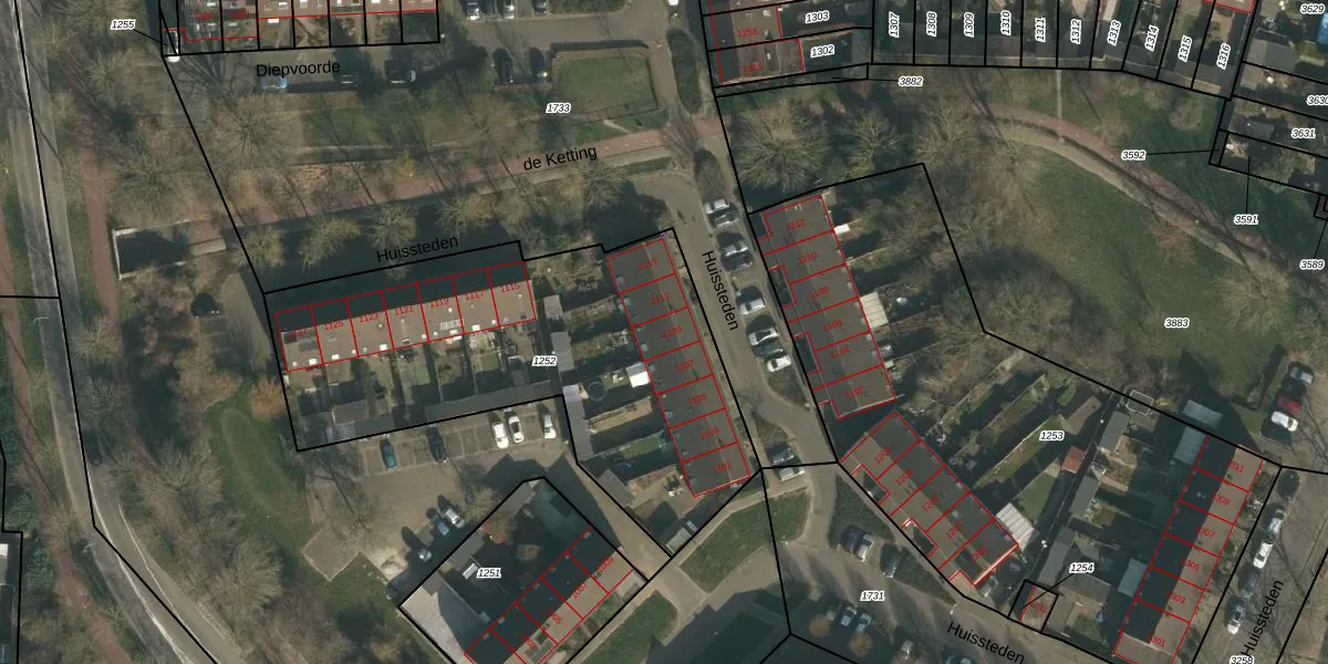 Huissteden 1109 is gelegen op kadastraal perceel WCN00F1252. Deze kadastrale aanduiding is uniek en wordt gebruikt door het Kadaster om eigendomsrechten en andere zakelijke rechten vast te leggen. Het perceel maakt onderdeel uit van de kadastrale gemeente Wijchen.