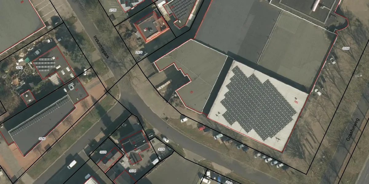 Het perceel waarop Industriepark 25 staat heeft een oppervlakte van 1,1 ha. Dit is een zeer groot perceel. De perceeloppervlakte wordt geregistreerd door het Kadaster. Gedetailleerde informatie over de maten van dit perceel kunt u vinden in het rapport Kadastrale kaart met maatvoering van Industriepark 25.