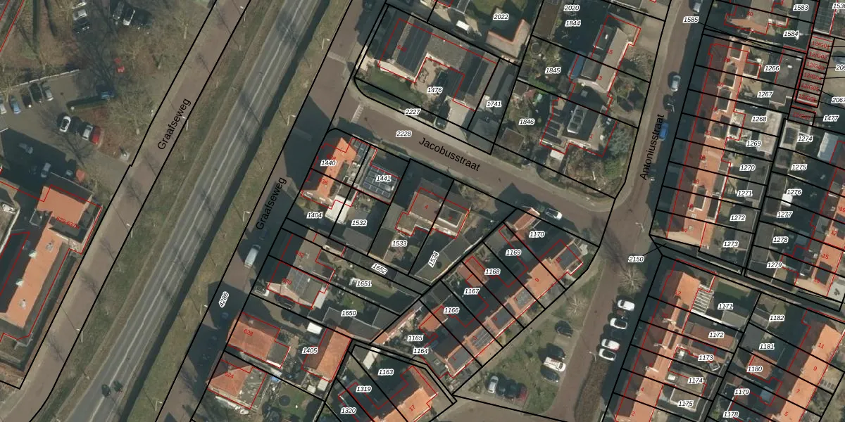 Het perceel waarop Jacobusstraat 4 staat heeft een oppervlakte van 283 m². Dit is een middelgroot perceel. De perceeloppervlakte wordt geregistreerd door het Kadaster. Gedetailleerde informatie over de maten van dit perceel kunt u vinden in het rapport Kadastrale kaart met maatvoering van Jacobusstraat 4.