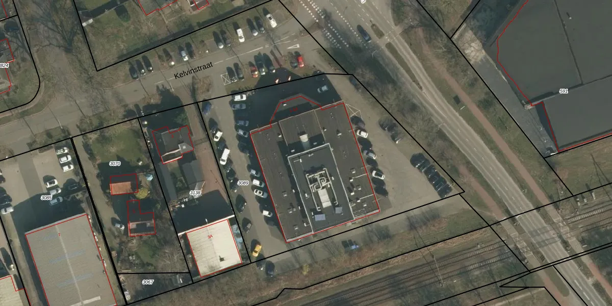 Het perceel waarop Kelvinstraat 1 staat heeft een oppervlakte van 3230 m². Dit is een zeer groot perceel. De perceeloppervlakte wordt geregistreerd door het Kadaster. Gedetailleerde informatie over de maten van dit perceel kunt u vinden in het rapport Kadastrale kaart met maatvoering van Kelvinstraat 1.