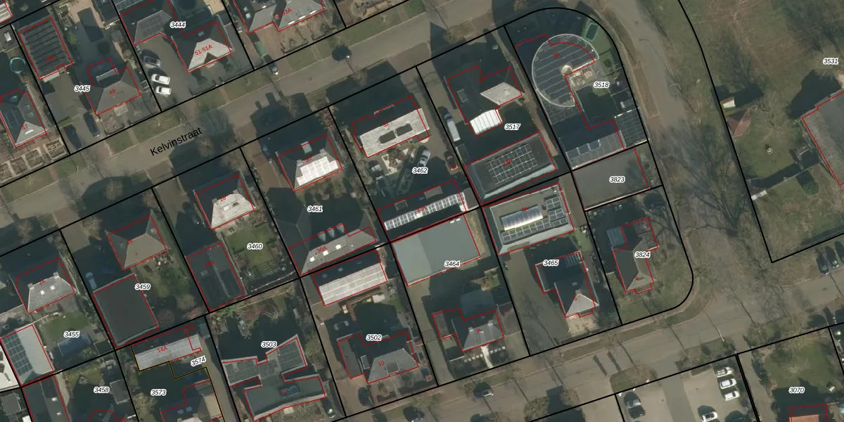 Kelvinstraat 32-A is gelegen op kadastraal perceel WCN00B3462. Deze kadastrale aanduiding is uniek en wordt gebruikt door het Kadaster om eigendomsrechten en andere zakelijke rechten vast te leggen. Het perceel maakt onderdeel uit van de kadastrale gemeente Wijchen.