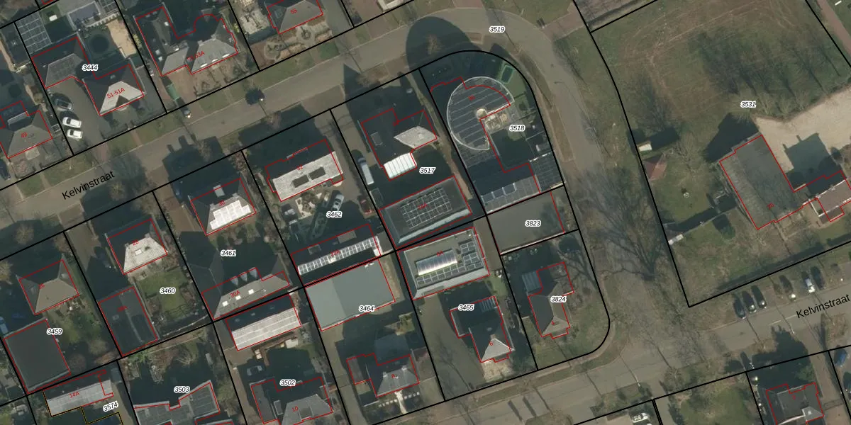 Kelvinstraat 34-A is gelegen op kadastraal perceel WCN00B3517. Deze kadastrale aanduiding is uniek en wordt gebruikt door het Kadaster om eigendomsrechten en andere zakelijke rechten vast te leggen. Het perceel maakt onderdeel uit van de kadastrale gemeente Wijchen.