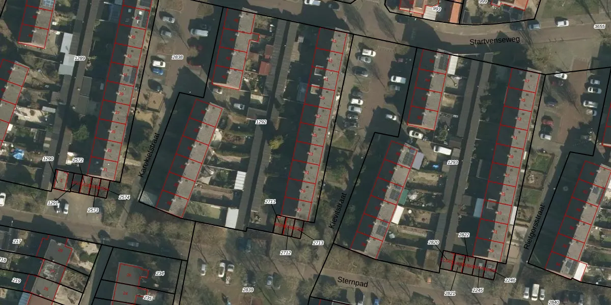 Het perceel waarop Kievitstraat 33 staat heeft een oppervlakte van 3425 m². Dit is een zeer groot perceel. De perceeloppervlakte wordt geregistreerd door het Kadaster. Gedetailleerde informatie over de maten van dit perceel kunt u vinden in het rapport Kadastrale kaart met maatvoering van Kievitstraat 33.