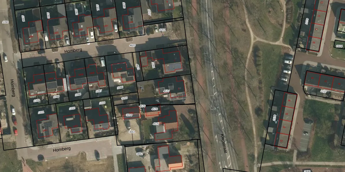 Gebruik de zoekbalk of klik op een perceel voor informatie over de adressen binnen dit perceel.