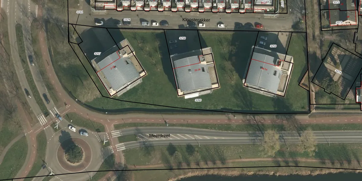 Kloosterakker 36 is gelegen op kadastraal perceel WCN00I3258. Deze kadastrale aanduiding is uniek en wordt gebruikt door het Kadaster om eigendomsrechten en andere zakelijke rechten vast te leggen. Het perceel maakt onderdeel uit van de kadastrale gemeente Wijchen.