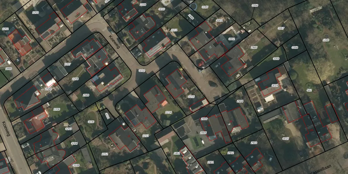 Koeweg 24 is gelegen op kadastraal perceel WCN00I2215. Deze kadastrale aanduiding is uniek en wordt gebruikt door het Kadaster om eigendomsrechten en andere zakelijke rechten vast te leggen. Het perceel maakt onderdeel uit van de kadastrale gemeente Wijchen.