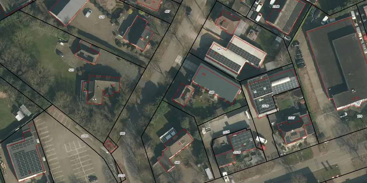 Het adres ligt op het perceel WCN00-K-548, dat zich in de kadastrale gemeente Wijchen bevindt. De gemiddelde perceelgrootte in Wijchen is 1828,4 m². Dit perceel is kleiner: de perceeloppervlakte bedraagt 1050 m². Het kleinste perceel in de kadastrale gemeente is 0 m² groot. De grootste perceeloppervlakte is 66,4 ha. Er zijn 2 adressen aanwezig op het perceel. In de Basisregistratie Kadaster (BRK) werden de grenzen van het perceel geregistreerd op 27-05-2010.