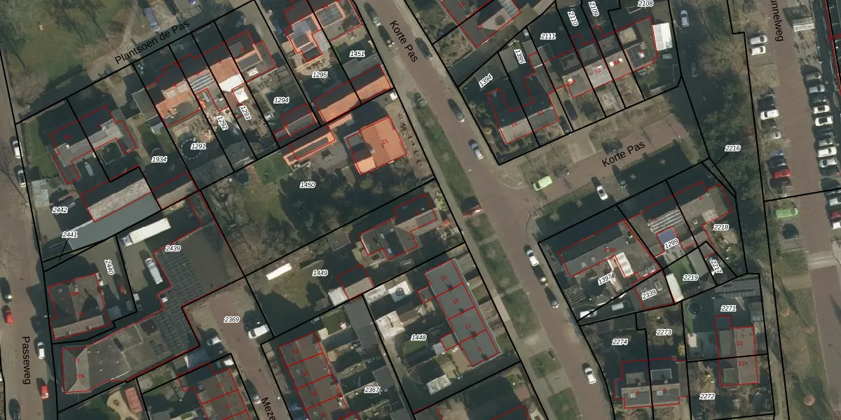 Het perceel waarop Korte Pas 17 staat heeft een oppervlakte van 860 m². Dit is een groot perceel. De perceeloppervlakte wordt geregistreerd door het Kadaster. Gedetailleerde informatie over de maten van dit perceel kunt u vinden in het rapport Kadastrale kaart met maatvoering van Korte Pas 17.