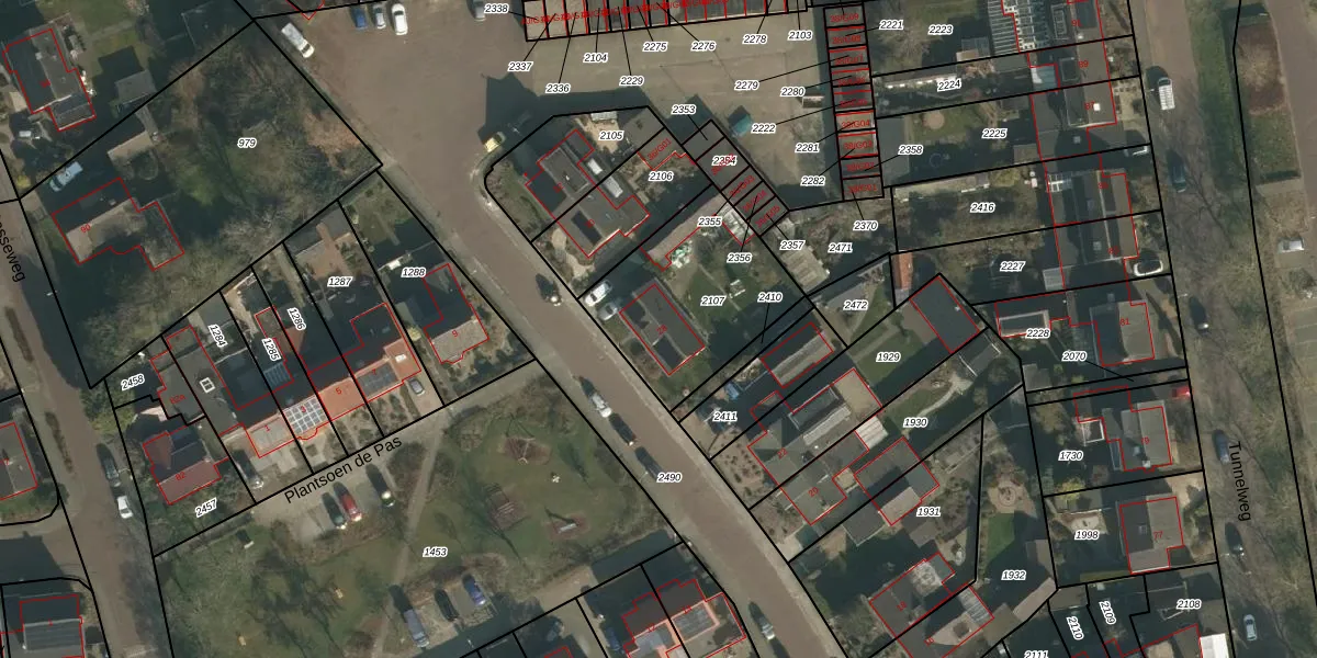 Het adres ligt op het perceel WCN00-G-2107, dat zich in de kadastrale gemeente Wijchen bevindt. De gemiddelde perceelgrootte in Wijchen is 1828,4 m². Dit perceel is kleiner: de perceeloppervlakte bedraagt 600 m². Het grootste perceel in de kadastrale gemeente is 66,4 ha. Het kleinste perceel heeft een oppervlakte van 0 m². Op het perceel bevinden zich geen andere adressen. De huidige grenzen van het perceel zijn digitaal in de Basisregistratie Kadaster (BRK) geregistreerd op 24-10-2007.
