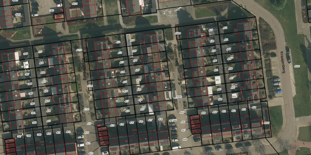 Gebruik de zoekbalk of klik op een perceel voor informatie over de adressen binnen dit perceel.