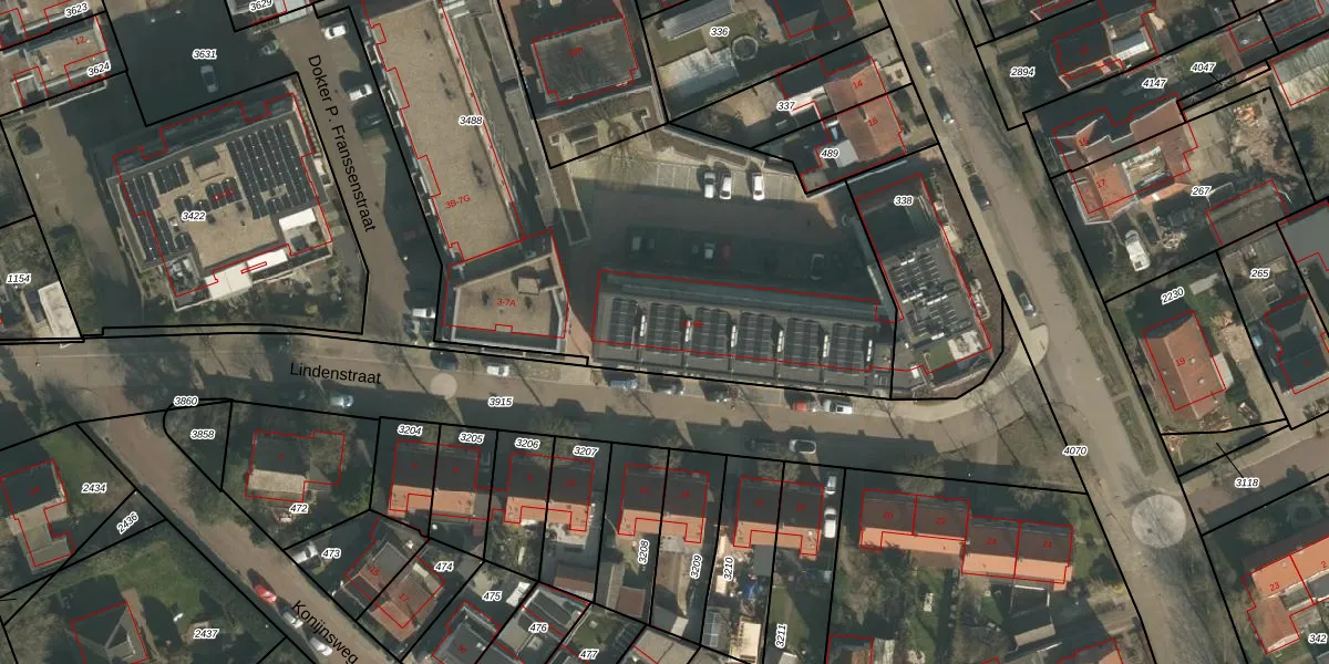 Het perceel waarop Lindenstraat 13 staat heeft een oppervlakte van 2961 m². Dit is een zeer groot perceel. De perceeloppervlakte wordt geregistreerd door het Kadaster. Gedetailleerde informatie over de maten van dit perceel kunt u vinden in het rapport Kadastrale kaart met maatvoering van Lindenstraat 13.