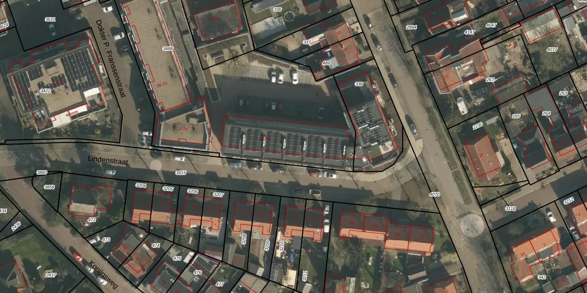 Het perceel waarop Lindenstraat 17 staat heeft een oppervlakte van 2961 m². Dit is een zeer groot perceel. De perceeloppervlakte wordt geregistreerd door het Kadaster. Gedetailleerde informatie over de maten van dit perceel kunt u vinden in het rapport Kadastrale kaart met maatvoering van Lindenstraat 17.