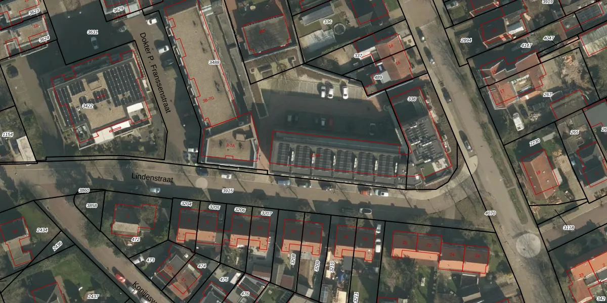 Het perceel waarop Lindenstraat 25 staat heeft een oppervlakte van 2961 m². Dit is een zeer groot perceel. De perceeloppervlakte wordt geregistreerd door het Kadaster. Gedetailleerde informatie over de maten van dit perceel kunt u vinden in het rapport Kadastrale kaart met maatvoering van Lindenstraat 25.