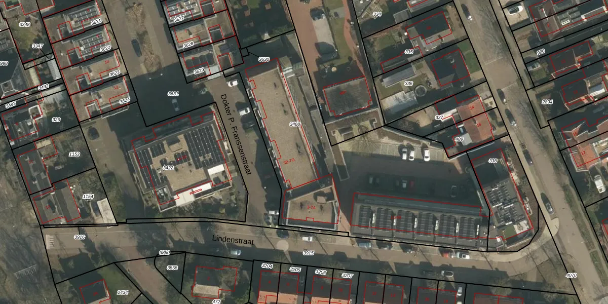 Het perceel waarop Lindenstraat 3-C staat heeft een oppervlakte van 2961 m². Dit is een zeer groot perceel. De perceeloppervlakte wordt geregistreerd door het Kadaster. Gedetailleerde informatie over de maten van dit perceel kunt u vinden in het rapport Kadastrale kaart met maatvoering van Lindenstraat 3-C.
